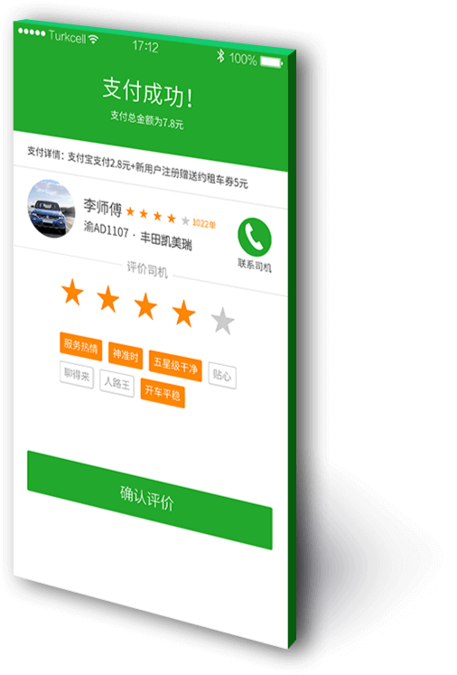 • 9支付完成,對行程司機服務進行評價